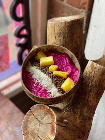The menu at Vibes Juice Bar is a delightful mix of colorful smoothie bowls and juices that are perfect for any time of day. One of the highlights is the Açaí Na Tigela, a Brazilian-inspired bowl topped with a variety of fruits and granola. For those who love a tropical twist, the Spiced Mango Smoothie Bowl offers a burst of flavors that will transport you to a sunny beach, with its rich, spiced mango base and fresh toppings. If you’re in the mood for something a little more exotic, the Pitaya Bowl is a must-try. Made with vibrant pink pitaya (dragon fruit), this bowl is as visually stunning as it is delicious. And don’t forget the Coco Berry Açaí Bowl, which combines the rich taste of açaí with the creamy texture of coconut and fresh berries, offering a perfectly balanced treat. For those looking to detox, the Green Detox with Ginger provides a refreshing, revitalizing drink that will help you feel your best.